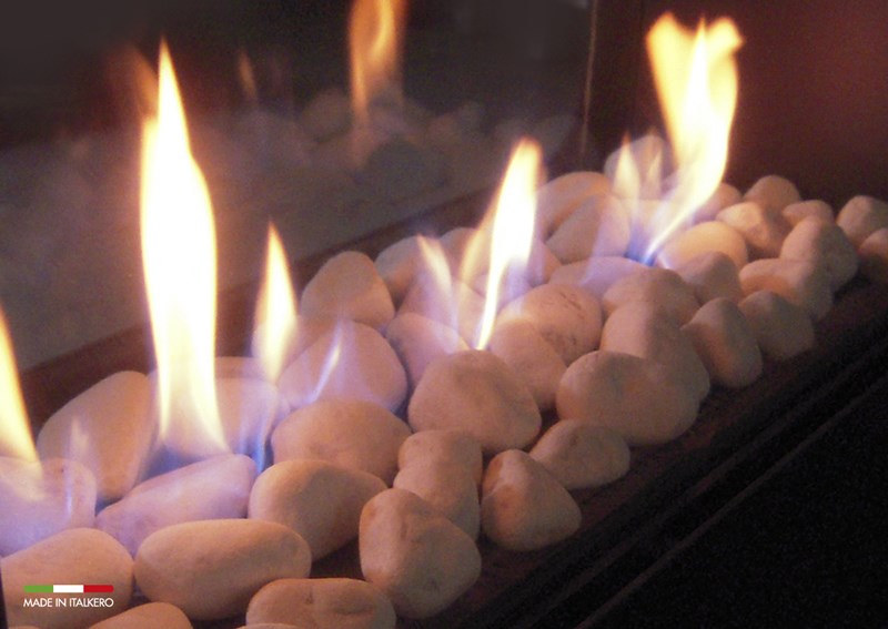 Bílé říční oblázky do plynových krbů a hořáků