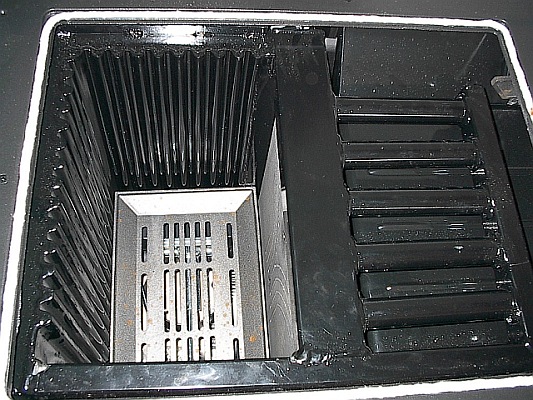 Takto vypadal výměník v prvním sporáku termoRosa. Rošt byl litinový ostatní je ocelové. Stěny u tohoto typu se špatně čistily.