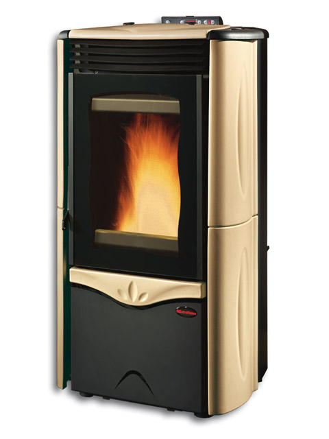 Stálice mezi interiérovými kotly.Optimální výkon do vody až 10,8 kW a 1,2 kW do vzduchu je optimální velikost i do novějších nízkoenergetických domů, kde proti elektrickému kotlíku uspoří až 2/3 nákladů. Kachlové nebo ocelové obložení stěn v barvách bordo, pergamena nebo černá.Litinová konstrukce spalovací komory,  zásobník na 20 kg, spotřeba 0,8 - 2,8 kg/hod, výkon 3,6 - 12  kW/hod. Maximální doba hoření v režimu minimum  22 hodin. Účinnost 92,8 %. Doplňování paliva za jeden až dva dny, vybírání popela jednou  týdně. Velké prosklení, plně automatický provoz, vysoká efektivita topení snadná instalace i do stávající topné soustavy jsou nepřehlédnutelné výhody.